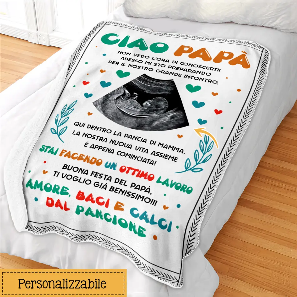 Manta personalizada para papá | Primer regalo del Día del Padre | Hola papá, no puedo esperar a conocerte.