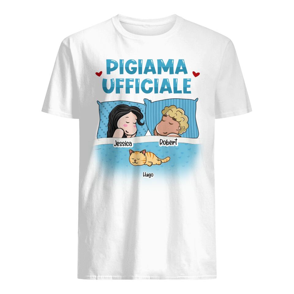 Pijama Oficial de Pareja, Camiseta Unisex Personalizable para Amantes de los Perros y Gatos